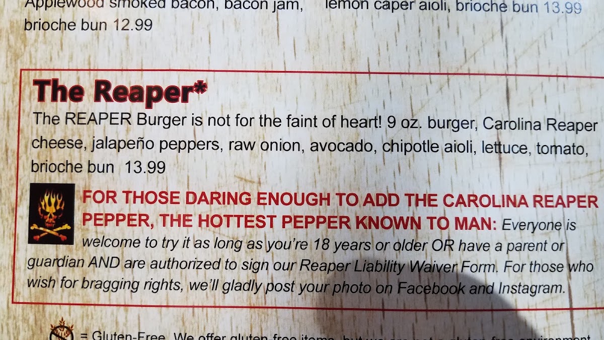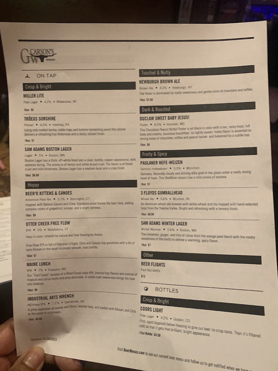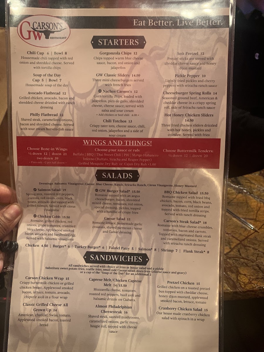 GW Carsons Menu